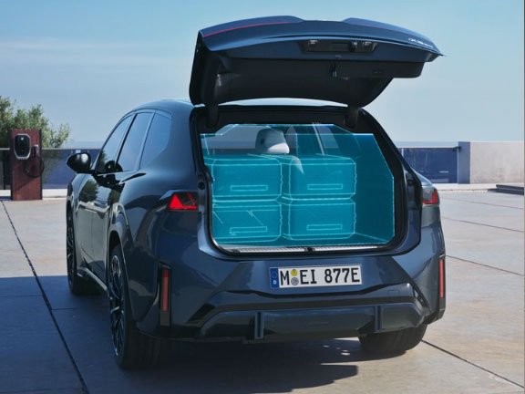 Portbagajul modelului BMW iX3 oferă o capacitate generoasă de până la 1.750 litri. Există şi un spaţiu suplimentar de 58 litri sub capotă, unde cablul de încărcare poate fi depozitat în siguranţă şi accesat uşor.
