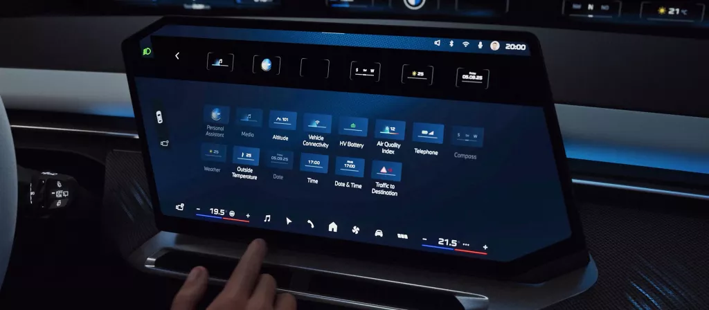 BMW iX3 se remarcă prin consum redus de energie electrică şi autonomie ridicată şi va susţine în viitor soluţii inteligente de încărcare, precum încărcarea bidirecţională¹¹. Cu conceptul inovator de afişare şi operare BMW Panoramic iDrive, BMW iX3 este echipat cu un ecran central de 17,9", cu rezoluţie înaltă şi design Free-cut. Noua funcţie BMW Panoramic Vision afişează conţinut personalizabil individual pe întreaga lăţime a parbrizului.