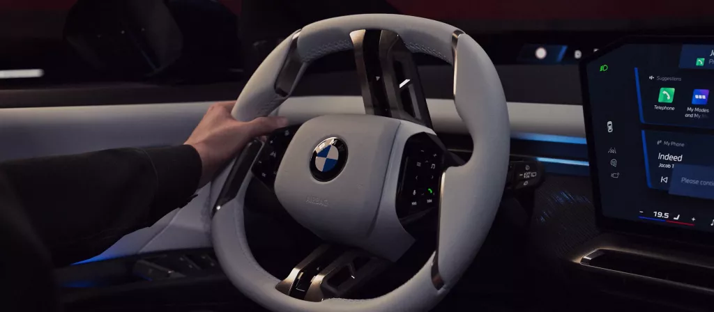 ³ Datorită actualizărilor de software regulate, designul ecranului din materialele de comunicare poate diferi de designul real al ecranului din automobilul tău. Volanul BMW Individual în culoarea Alb Digital va fi disponibil opţional începând cu 01/26.